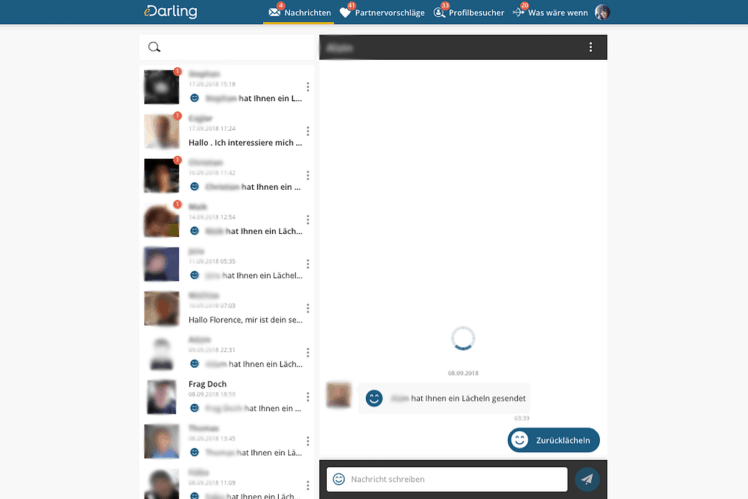 In der kostenlosen Variante könnt ihr die Fotos anderer Nutzer nur reichlich verschwommen sehen. Nachrichten könnt ihr nicht lesen, da auch diese geblurrt sind. Das empfinde ich ehrlich gesagt als angenehmer als bei Parship und ElitePartner. Bei diesen beiden Portalen könnt ihr jeweils die erste Nachricht eines Mitglieds komplett lesen und auch beantworten.
