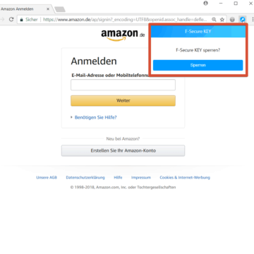 In beiden Fällen tritt F-Secure KEY nicht in Erscheinung. Keine Daten oder anklickbaren Elemente in den Formularfeldern, nichts Neues im Adressleisten-Icon der Browser-Erweiterung.
