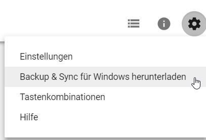 Unten links erschien beim ersten Einloggen eine Schaltfläche zum Herunterladen der Software, die „Backup & Sync“ heißt. Die verschwindet, wenn ihr das einmal gemacht habt. Der Download steht aber jederzeit oben rechts im Schräubchen-Menü zur Verfügung.