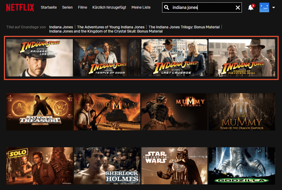 Dann verbinde ich mich über IPVanish mit einem Server in den USA und führe die Suche noch einmal durch. Nun sollten wir das Geoblocking umgehen und siehe da – die Filme sind vorhanden: