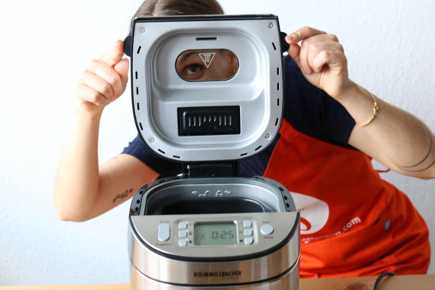 Nun soll es aber endlich losgehen mit dem Backen! Eins können wir bereits vorab sagen: In Sachen Bedienung hat uns der Rommelsbacher Brotbackautomat BA 550 überzeugt! Deckel auf, Backform mit einem Twist einsetzen und schon ist der Automat startbereit.