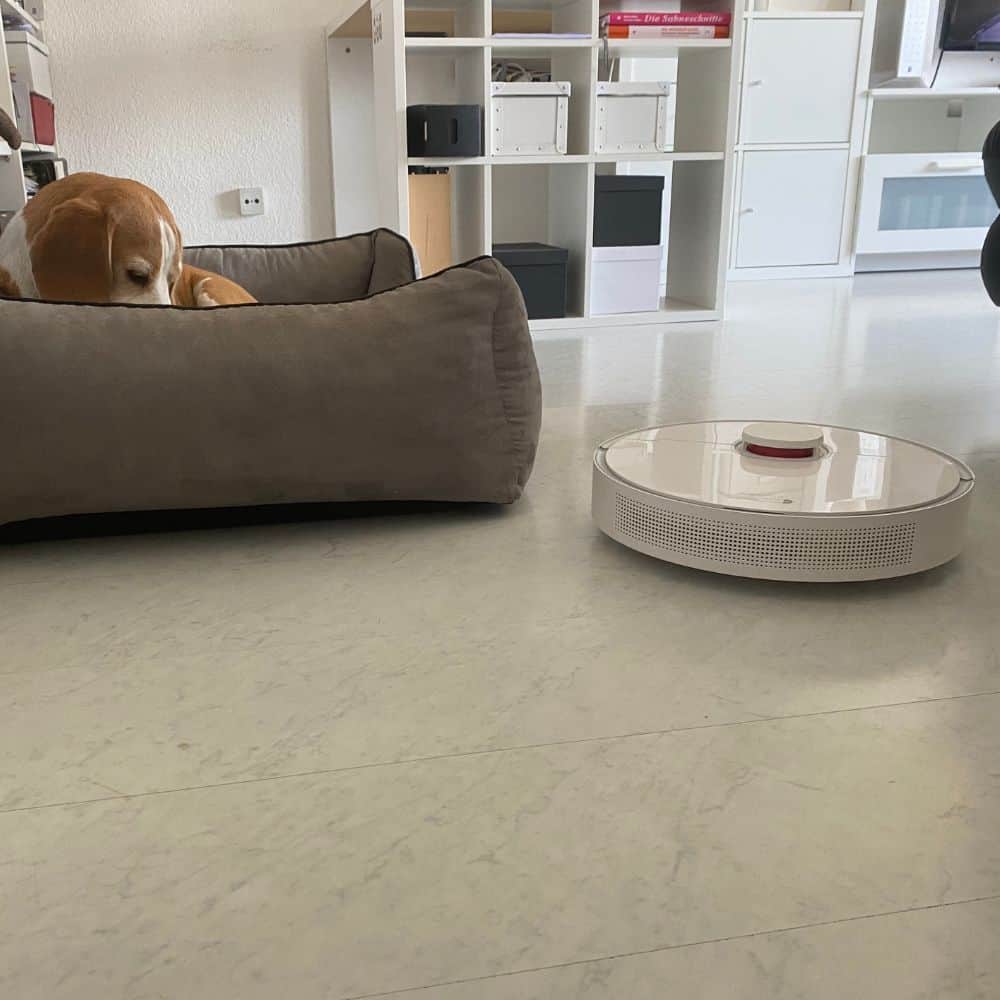 Ihr ruht euch vom Spazieren aus, der Robomop entfernt Pfotenabdrücke