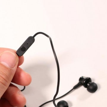 An der Gabelung des Kabels sitzt ein Mikro mit einer Einknopf-Fernbedienung, über die ihr im Playermodus starten und stoppen, sowie im Anrufmodus stummschalten oder auflegen könnt. Das klappt sowohl mit einem Android, als auch einem Apple-Gerät.