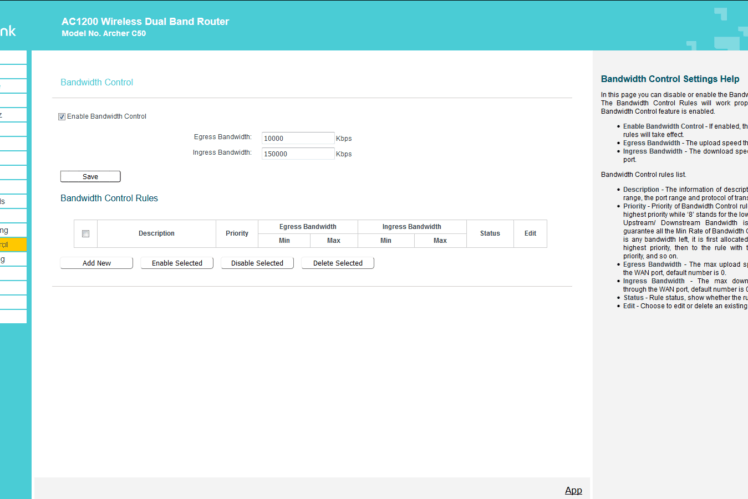 TP-Link Archer C50 – Bandbreiten-Kontrolle aktivieren